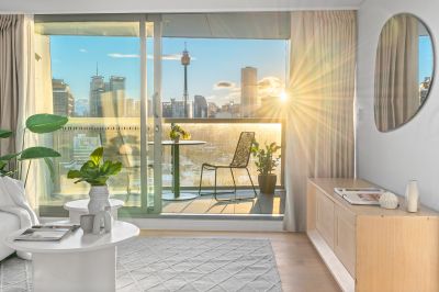 Set high on level 11 of the award-winning Omnia building, this expansive two-bedroom, strata residence, captures the most iconic views in Sydney; stretching from the Harbour Bridge and Opera House to the city skyline and beyond. Designed for refined inner-city living, the apartment offers 101 sqm of large-scale interiors, premium finishes and breathtaking panoramas in a building renowned for its sculptural form and luxury amenity.